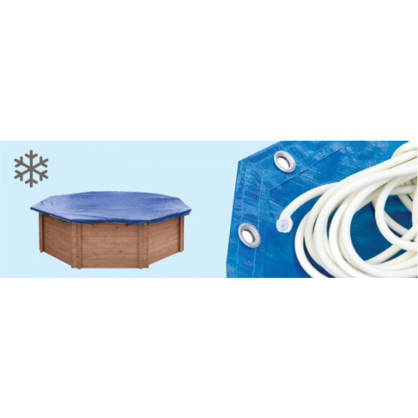 Geleverd als doe-het-zelfpakket inclusief Houten ombouw zwembad, PVC Liner met bevestigingen en een linerlock, geotextiel grond en muren, een skimmer en inlaat, RVS ladder 3 of 4 treden met geflensde ankerconverters en schroeven voor montage, pomp en zandfilter met bovenklep, filterzand, set buizen en hulpstukken voor pomp- en filtermontage, en montage-instructies.